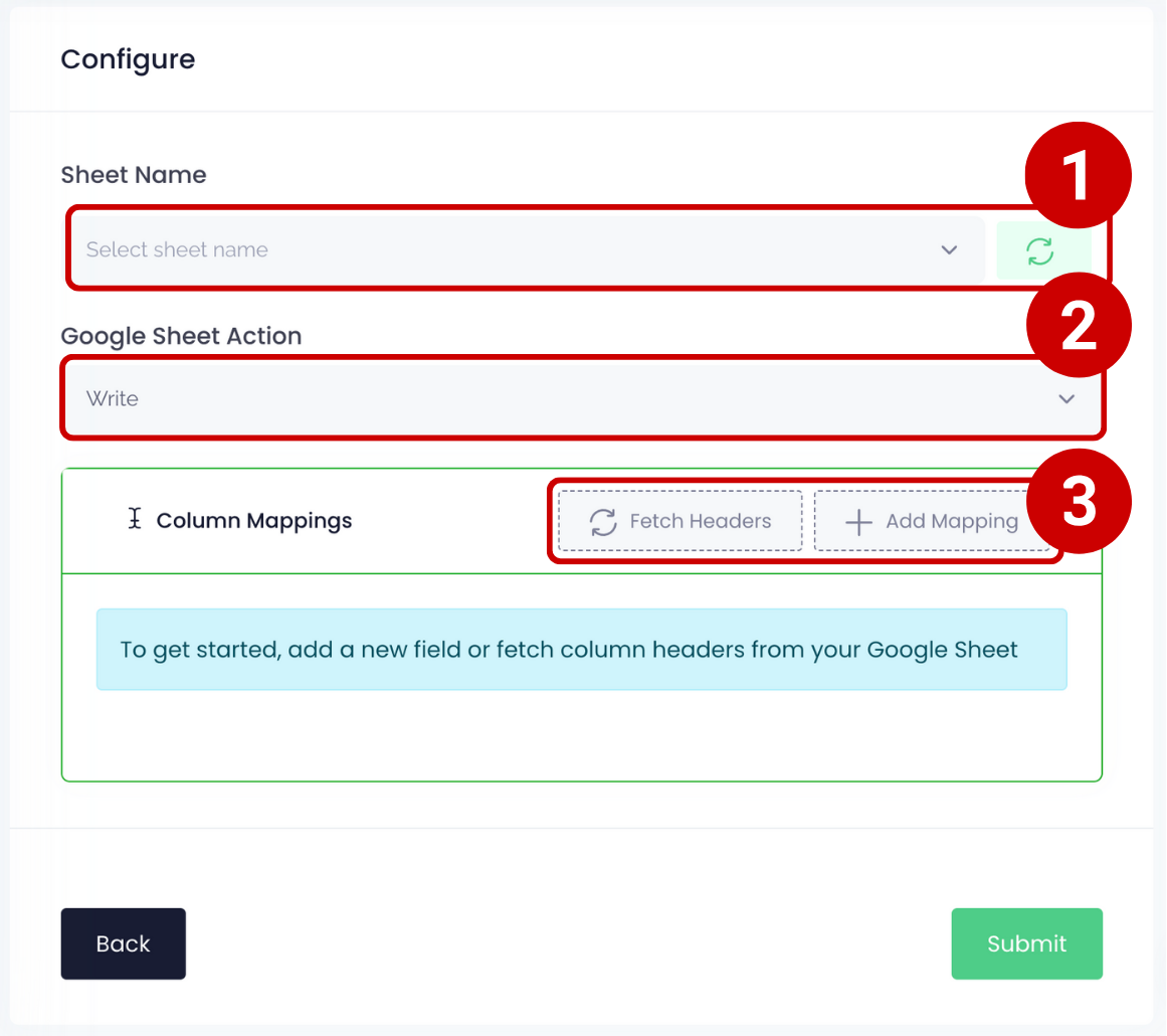 Select Sheet Name: Pilih nama sheet Google Sheets yang ingin digunakan.